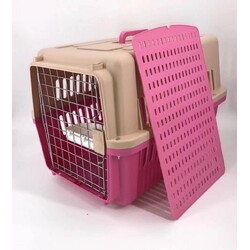 YES4PETS Large Dog Cat Crate Pet Carrier Airline Rabbit Cage With Tray And Bowl Pink