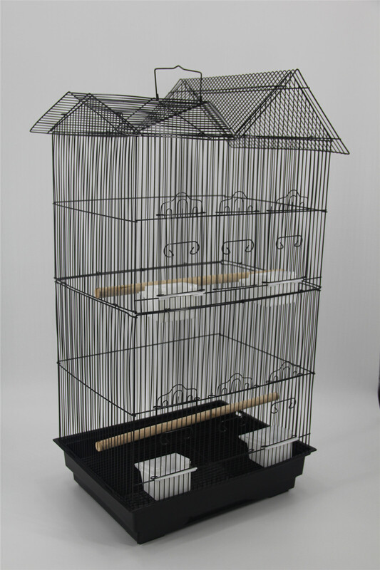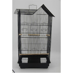 Our good quality wrought iron birdcage features perches, feeders and ample room for your bird to spread their wings. The birdcage is built to last and is ideal for a small bird.