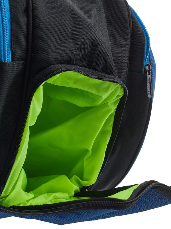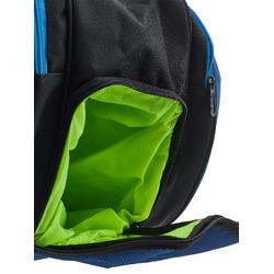 The middle pocket has a duffel-like entry and can be utilized for racquets or court gear. The heavy duty backpack straps are padded and adjustable and can be removed so the bag can be carried in either direction (with the racquet heads at the top or bottom). And there is a large exterior accessory compartment for additional gear as well as a separate shoe pocket on the bottom of the bag. With ample space, you are sure to arrive to the courts prepared.
