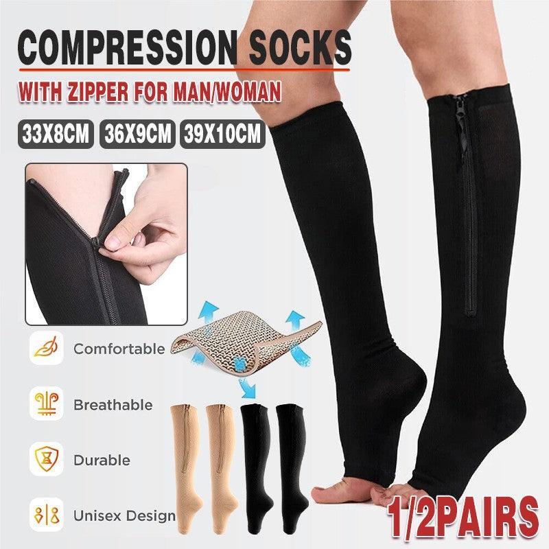 Zip Sox Compression Socks Zipper Leg Support Knee Open Toe Shaper Stockings