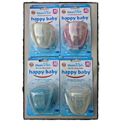 4 x Happy Baby Steam N Go Soothers Steriliser/Cleaner 6 Months + Cherry Silicone Large