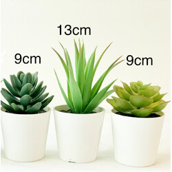 3 Pack of Artificial Succulent Potted Plants in White Plastic 6cm Pot Interior Decoration