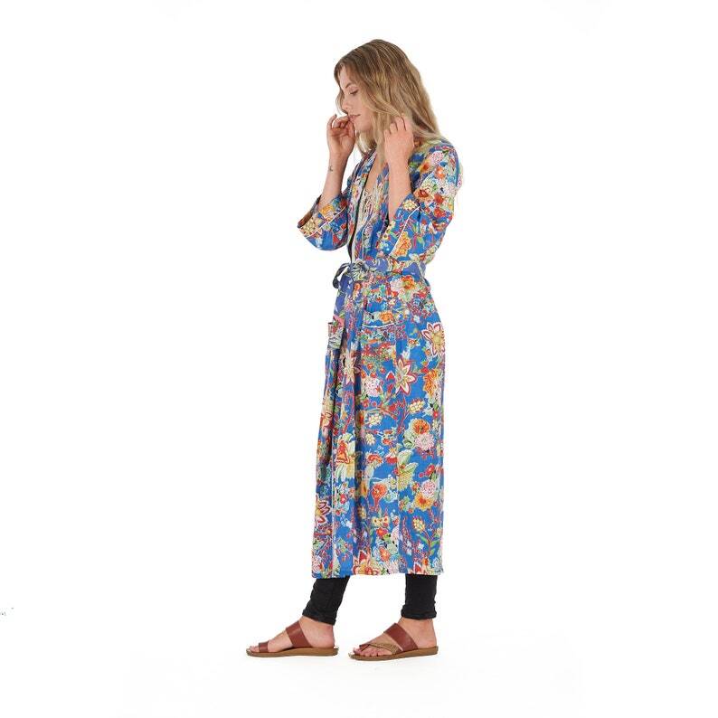 A beautiful Frida Kahlo inspired kimono robe for a super price. Perfect as a kimono, robe or a kaftan. Made from super comfy light weight cotton cambric so treat yourself to ultimate comfort whether you are simply winding up at night, getting ready for the morning or just cozying up in your lounge to binge watch a move on Netflix.