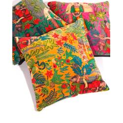 Linen Connections Frida Kahlo Velvet Cushion Cover Frida's Garden Cushion Handmade Mexico Muertes Decorative Cushion 100% cotton velvet