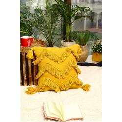 Tassels Linen Cushion Cover 50*50cm Beige Pillow Cover Handmade Boho rustic decor cream Moroccan Cushions Hand Tufted Cushion Lumbar Pillow