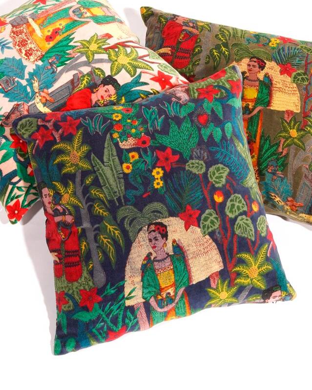 Linen Connections Frida Kahlo Velvet Cushion Cover Frida's Garden Cushion Handmade Mexico Muertes Decorative Cushion 100% cotton velvet