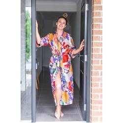 A beautiful Frida Kahlo inspired kimono robe for a super price. Perfect as a kimono, robe or a kaftan. Made from super comfy light weight cotton cambric so treat yourself to ultimate comfort whether you are simply winding up at night, getting ready for the morning or just cozying up in your lounge to binge watch a move on Netflix.