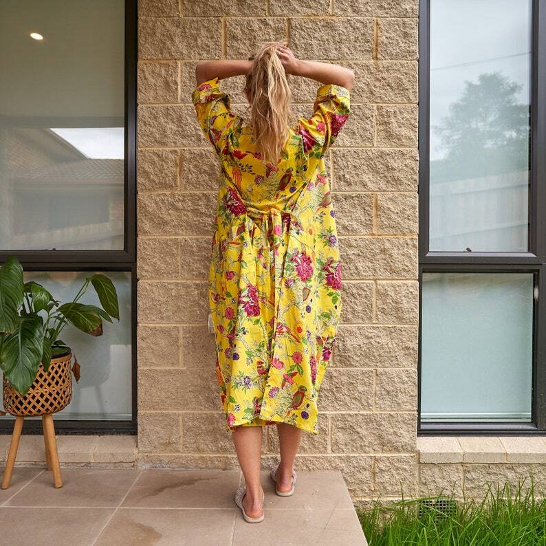 A beautiful Frida Kahlo inspired kimono robe for a super price. Perfect as a kimono, robe or a kaftan. Made from super comfy light weight cotton cambric so treat yourself to ultimate comfort whether you are simply winding up at night, getting ready for the morning or just cozying up in your lounge to binge watch a move on Netflix.