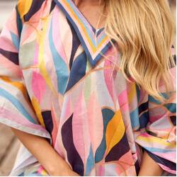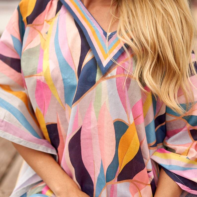 Linen Connections Trendy Silk Kaftan For Women Long Kaftan Resort Wear Vacation Beach Dress Boho Silk Dress Stripes Print Kaftan Gift For Her | Pink