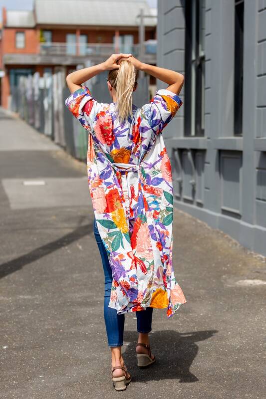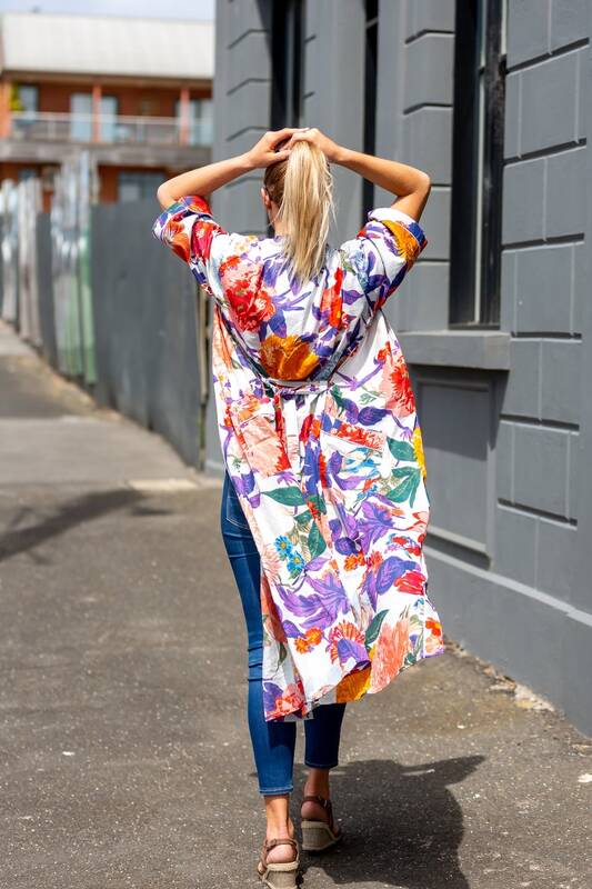 A beautiful Frida Kahlo inspired kimono robe for a super price. Perfect as a kimono, robe or a kaftan. Made from super comfy light weight cotton cambric so treat yourself to ultimate comfort whether you are simply winding up at night, getting ready for the morning or just cozying up in your lounge to binge watch a movie on Netflix.