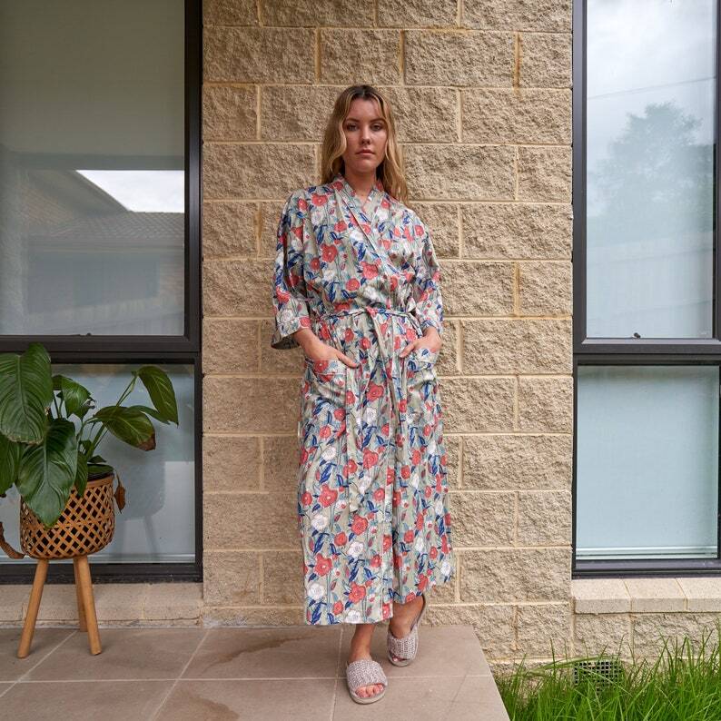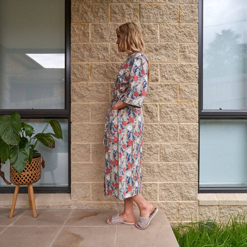 A beautiful Frida Kahlo inspired kimono robe for a super price. Perfect as a kimono, robe or a kaftan. Made from super comfy light weight cotton cambric so treat yourself to ultimate comfort whether you are simply winding up at night, getting ready for the morning or just cozying up in your lounge to binge watch a movie on Netflix.