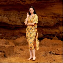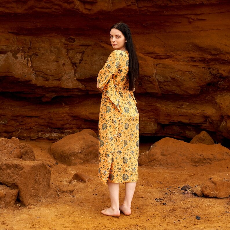 Linen Connections Cotton Kaftan Kimono Caridgan Summer Clothing Valentine Mother's Day Gift Maxi Dress Maternity Wear Christmas Gift for her | Yellow