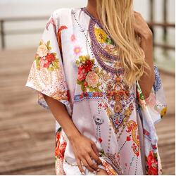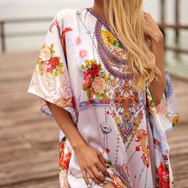 Linen Connections Trendy Silk Kaftan For Women Long Caftan Resort Wear Vacation Beach Dress Boho Silk Dress Kaftan Floral Print Silk Kaftan Gift For H