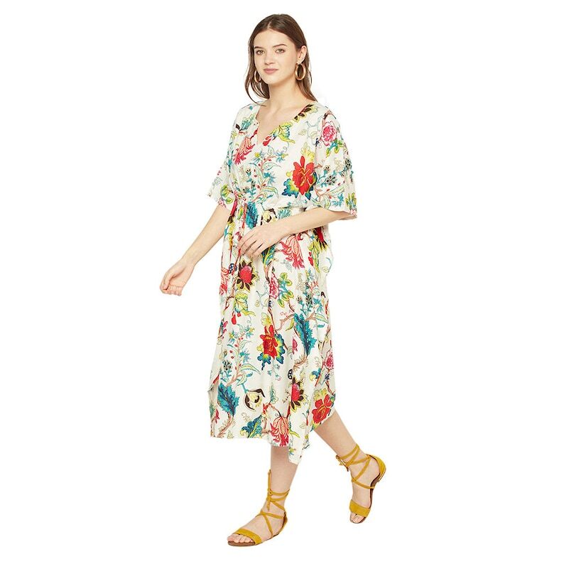 A beautiful Frida Kahlo inspired kaftan for a super price. Perfect as a kimono, robe or a kaftan. Made from super comfy light weight cotton cambric so treat yourself to ultimate comfort whether you are simply winding up at night, getting ready for the morning or just cozying up in your lounge to binge watch a movie on Netflix.