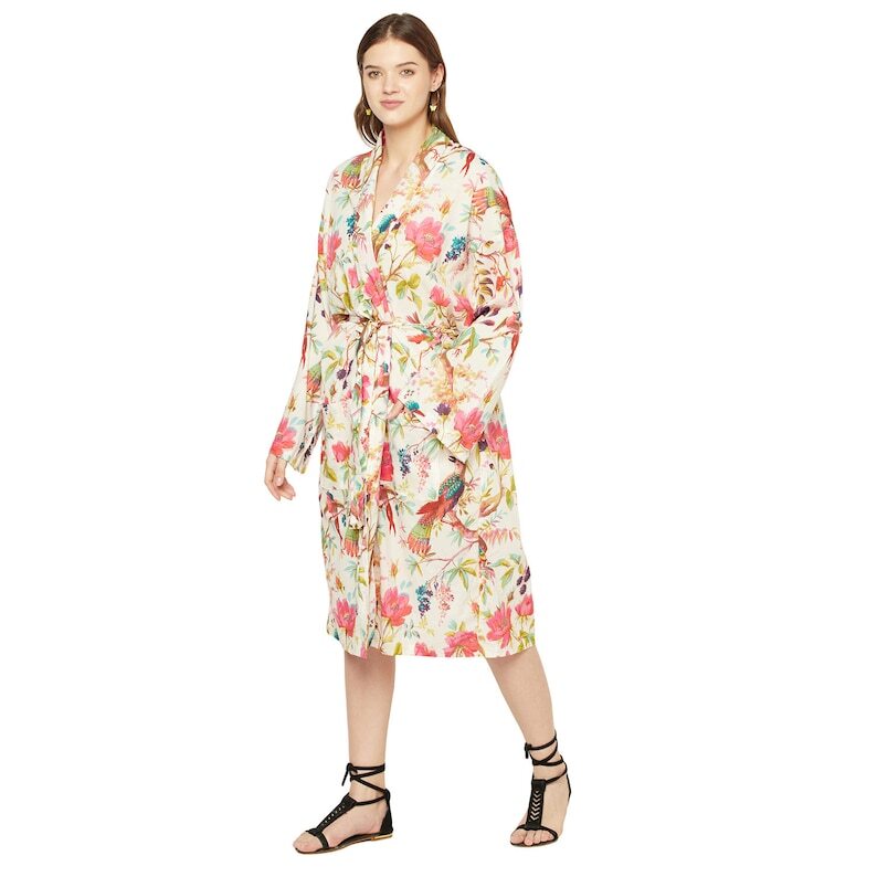 A beautiful Frida Kahlo inspired kaftan for a super price. Perfect as a kimono, robe or a kaftan. Made from super comfy light weight cotton cambric so treat yourself to ultimate comfort whether you are simply winding up at night, getting ready for the morning or just cozying up in your lounge to binge watch a movie on Netflix.