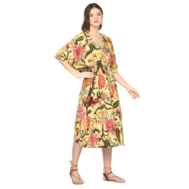 A beautiful Frida Kahlo inspired kaftan for a super price. Perfect as a kimono, robe or a kaftan. Made from super comfy light weight cotton cambric so treat yourself to ultimate comfort whether you are simply winding up at night, getting ready for the morning or just cozying up in your lounge to binge watch a movie on Netflix.