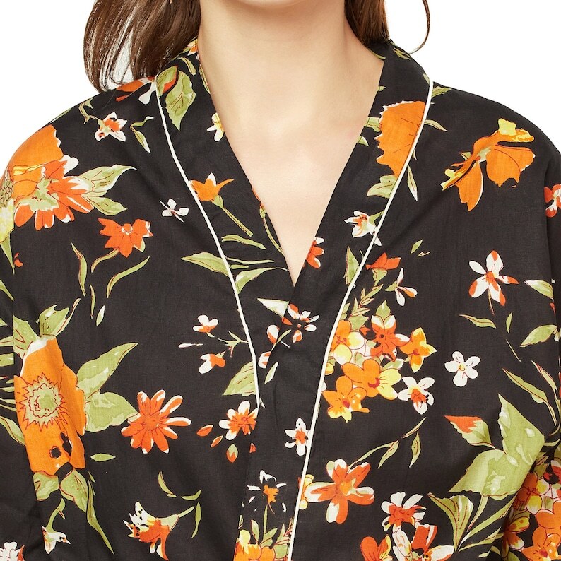 A beautiful Frida Kahlo inspired kimono robe for a super price. Perfect as a kimono, robe or a kaftan. Made from super comfy light weight cotton cambric so treat yourself to ultimate comfort whether you are simply winding up at night, getting ready for the morning or just cozying up in your lounge to binge watch a movie on Netflix.