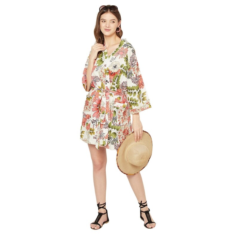 A beautiful Frida Kahlo inspired kimono robe for a super price. Perfect as a kimono, robe or a kaftan. Made from super comfy light weight cotton cambric so treat yourself to ultimate comfort whether you are simply winding up at night, getting ready for the morning or just cozying up in your lounge to binge watch a movie on Netflix.