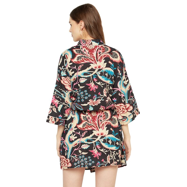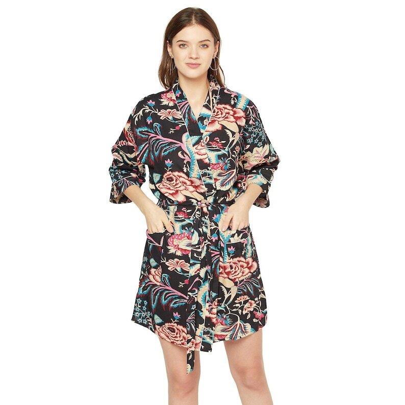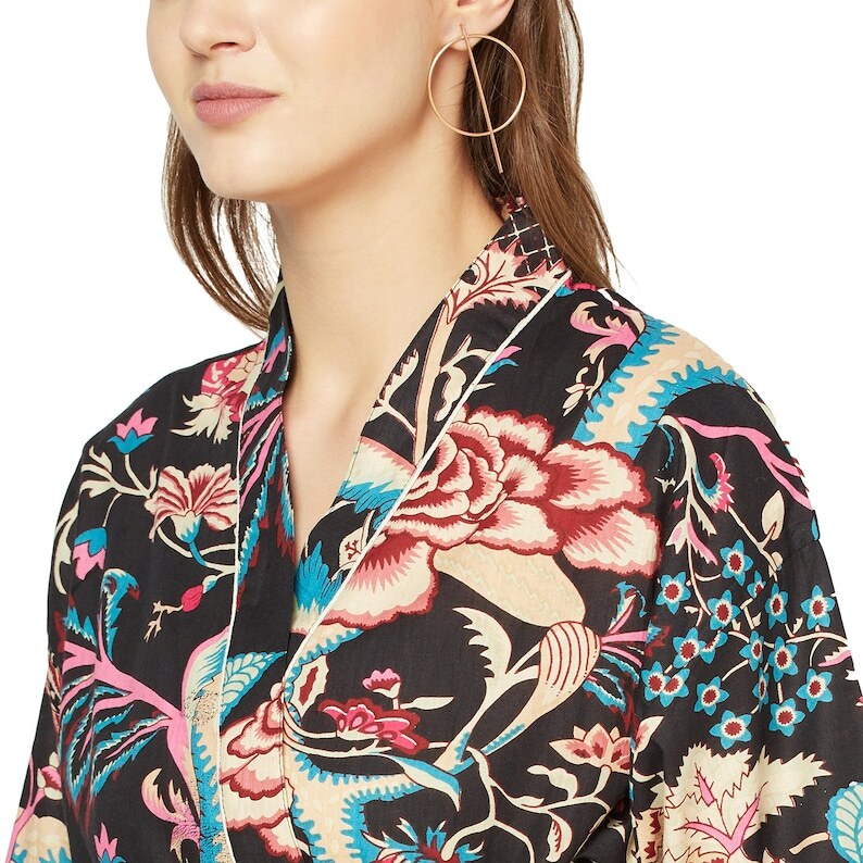 A beautiful Frida Kahlo inspired kimono robe for a super price. Perfect as a kimono, robe or a kaftan. Made from super comfy light weight cotton cambric so treat yourself to ultimate comfort whether you are simply winding up at night, getting ready for the morning or just cozying up in your lounge to binge watch a movie on Netflix.