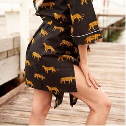 Kimono Cotton Kimono Bathrobe Frida Valentines Day GiftBird Bathrobe Turkish Bathrobe Cardigan Nightwear Dressing Gown Beach - Black Cheetah SCK51