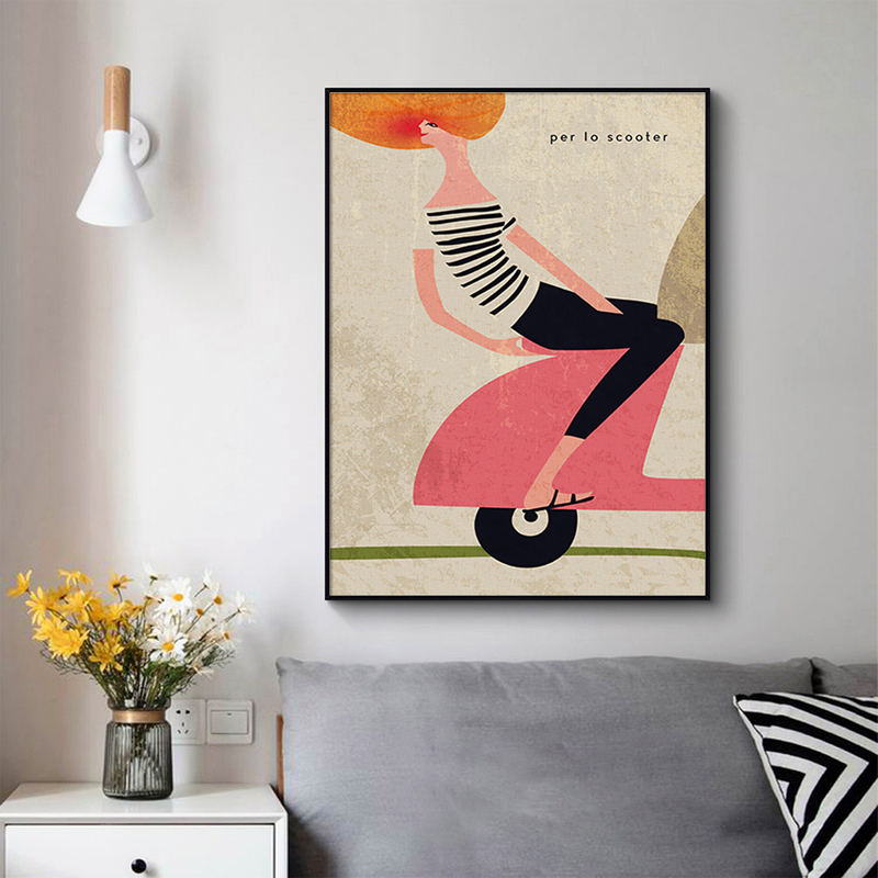 50cmx70cm Scooter Black Frame Canvas Wall Art